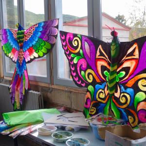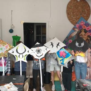 - Activités culturelles et artistiques en utilisant le cerf-volant comme support de création. Les cerfs-volants peuvent être décorés, puis exposés et former, à l’arrivée, des arches ou « trains » dans le ciel. De même, on peut inscrire tout cela dans un projet de création artistique plus global.